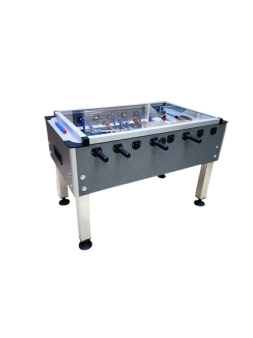 Jetonsuz camlı langırt masası kasası 30 cm yüksekliğinde ve 25 mm kalınlığında suntalamdır. Masanın üzeri 4mm kalınlığında temperli camla kapatılmıştır. Masa ayakları krikolu ve korozyona dayanıklı eloksal kaplamalı alüminyum malzemedir. Kollar 18 mm çelik çekme krom kaplamalıdır. Langırt masasının kasasının kale arkalarında free top bölümü vardır ; top gol olduğu zaman bu bölüme düşer. masa içerisinde 15 adet langırt topu bulunmaktadır.